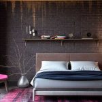 Hilfreicher Rat! Eine braune, marineblaue oder burgunderfarbene Wand in einem Schlafzimmer verleiht der Umgebung ein romantisches Flair, insbesondere wenn Sie das Interieur mit flackernden Kerzen ergänzen.