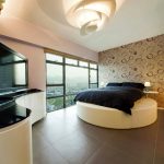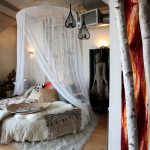 Μπορείτε να φτιάξετε ένα στρογγυλό κρεβάτι με τα χέρια σας.Θα είναι ένα ασυνήθιστο στοιχείο του δωματίου, ικανό όχι μόνο να το διακοσμήσει, αλλά και να επιλύσει προβληματικά ζητήματα χώρου με καμπύλους τοίχους. Αυτός ο σχεδιασμός σε μοντέρνους εσωτερικούς χώρους είναι εγκατεστημένος στο κέντρο ενός ευρύχωρου δωματίου, δίνοντάς του μια βασιλική πολυτέλεια.