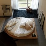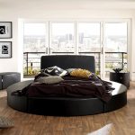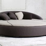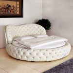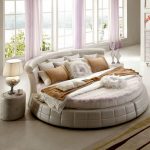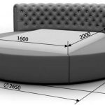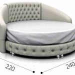 Το κρεβάτι μπορεί να είναι όχι μόνο ορθογώνιο, αλλά και στρογγυλό. Το τυπικό μέγεθος ενός τέτοιου προϊόντος έχει διάμετρο 220 cm.