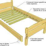 Κατά μήκος των μακρών στοιχείων πλαισίου στην εσωτερική πλευρά, οι δοκοί συνδέονται κάτω από τη βάση του ραφιού. Το άνω άκρο τους (αυτό φαίνεται καθαρά στο σχέδιο ενός διπλού κρεβατιού) βρίσκεται στο ίδιο επίπεδο με το άνω όριο του υπέρθυρου. Οι πλάκες μήκους 170 cm είναι κατασκευασμένες από σανίδες 20x100 mm. Πρέπει να τοποθετηθούν και να στερεωθούν στα υπέρθυρα και τις διαμήκεις δοκούς στήριξης με ένα βήμα 3 cm. Το πρώτο και το τελευταίο στοιχείο πρέπει να είναι σφιχτά δίπλα στο εμπρός και πίσω τοίχωμα του πλαισίου κρεβατιού.