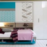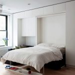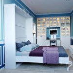 Το ντουλάπα Do-it-yourself στο σπίτι έχει μια ασυνήθιστη εμφάνιση. Το κρεβάτι αφαιρείται σε ειδικό χώρο αποθήκευσης, ο οποίος δεν είναι ορατός από το πλάι. Αυτό το μοντέλο σας επιτρέπει να εξοικονομήσετε ελεύθερο χώρο, καθώς η συναρμολογημένη δομή είναι μέρος του θαλάμου και δεν καταλαμβάνει χώρο.