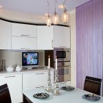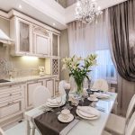 Επίσης, μην ξεχνάτε ότι οι κουρτίνες στο εσωτερικό της κουζίνας παίζουν διακοσμητικό ρόλο. Θεωρούνται βασικό στοιχείο για τη δημιουργία μιας πλήρους εμφάνισης κουζίνας. Το σωστό σχέδιο, το μήκος και η σκιά των κουρτινών θα γίνουν το σήμα κατατεθέν του επιλεγμένου εσωτερικού στυλ στο δωμάτιο.
