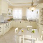 Οι λευκές κουρτίνες στην κουζίνα δεν θεωρούνται πρακτικές, διότι σε λευκό φόντο ίχνη σκόνης, ειδικά πιτσιλιές βρωμιάς, λιπών και άλλων ακαθαρσιών, θα είναι ευδιάκριτα ορατά. Εάν δεν υπάρχει επιθυμία να σταματήσετε το λευκό στην κουζίνα, τότε είναι προτιμότερο να προτιμάτε τις μπεζ κουρτίνες ή άλλες αποχρώσεις.