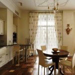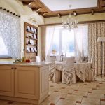- Το γενικό στυλ του εσωτερικού. Ο σχεδιασμός των κουρτινών κουζίνας πρέπει να ταιριάζει όσο το δυνατόν περισσότερο στο στυλ με το οποίο διατηρείται η κουζίνα, πρέπει να είναι στη θέση τους και δεν πρέπει να παραβιάζει τη γενική ιδέα του δωματίου.