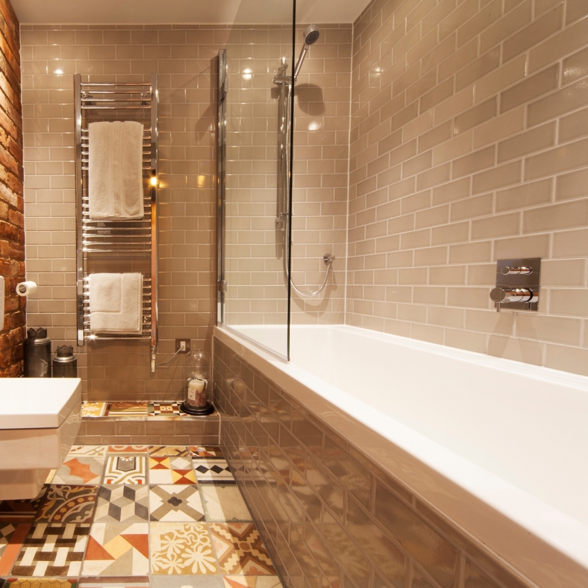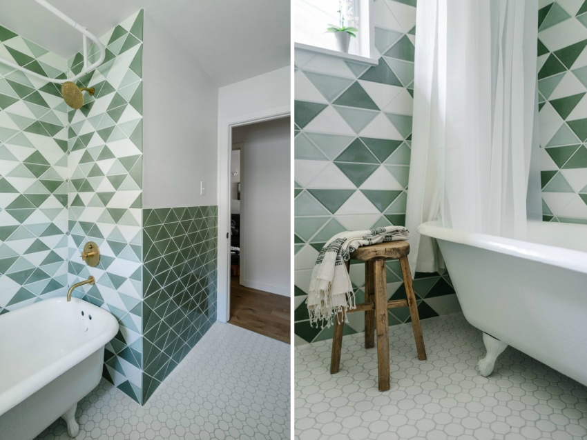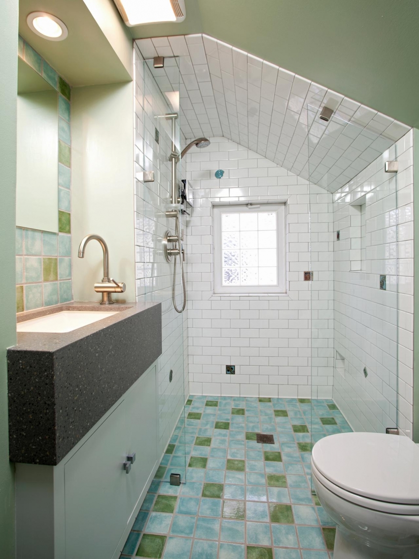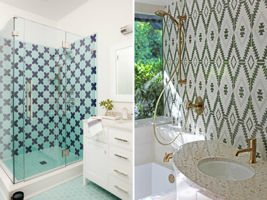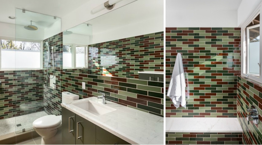 Πολύχρωμα πλακάκια μπορούν να χρησιμοποιηθούν για τη δημιουργία ενός μοναδικού μοτίβου στους τοίχους του μπάνιου