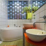 Ένας από τους πιο ελκυστικούς τύπους υλικών είναι τα γυάλινα πλακάκια μπάνιου. Οι φωτογραφίες της εσωτερικής διακόσμησης των χώρων που χρησιμοποιούν αυτό το υλικό φαίνονται ογκώδεις και ευάερες. Αυτό είναι ιδανικό για μικρά μπάνια. Ωστόσο, αυτό είναι ένα από τα πιο ακριβά υλικά, το οποίο έχει επίσης μια εύθραυστη δομή.