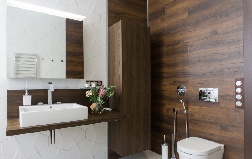 Χρήσιμες συμβουλές! Χρησιμοποιώντας πλακάκια σαν ξύλο για το μπάνιο, μπορείτε να δημιουργήσετε μια απομίμηση σάουνας ή μπάνιου από ξύλο στο δωμάτιο.