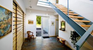 Τόσο η τεχνητή όσο και η φυσική πέτρα χρησιμοποιούνται συχνά για την τοποθέτηση δαπέδων στους διαδρόμους ιδιωτικών σπιτιών.