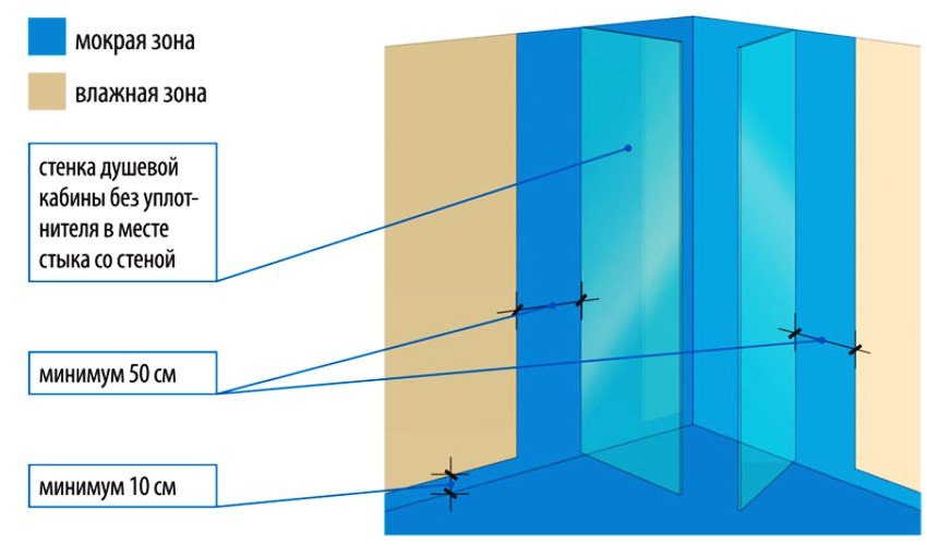 Η στεγανοποίηση με αυτόν τον τρόπο μπορεί να κανονιστεί σε ιδιαίτερα υγρά δωμάτια, συμπεριλαμβανομένων. σε σάουνες και πισίνες.