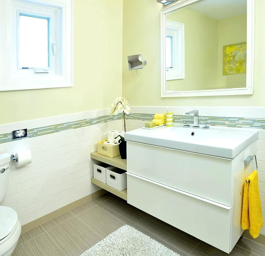 Ένας αρμονικός συνδυασμός με τοίχους, δάπεδα και φαγεντιανούς επηρεάζει την οπτική αντίληψη και την πληρότητα στη βελτίωση του δωματίου.