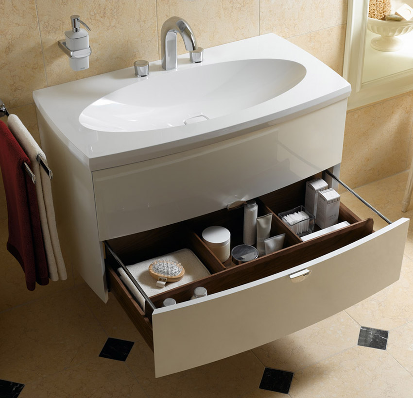 Η εγκατάσταση ενός καλού κομοδίνου κάτω από το νεροχύτη στο μπάνιο θα βοηθήσει τους ιδιοκτήτες να λύσουν μια σειρά λειτουργικών και καθημερινών προβλημάτων. Τα συρτάρια θα βοηθήσουν στην απόκρυψη μη ελκυστικών, αλλά απαραίτητα αντικείμενα προσωπικής υγιεινής, θα γίνουν μέρος για την αποθήκευση οικιακών χημικών. Τα ευρύχωρα ράφια θα έχουν πάντα όλο το φάσμα καθαρών πετσετών και πολλά είδη οικιακής χρήσης.