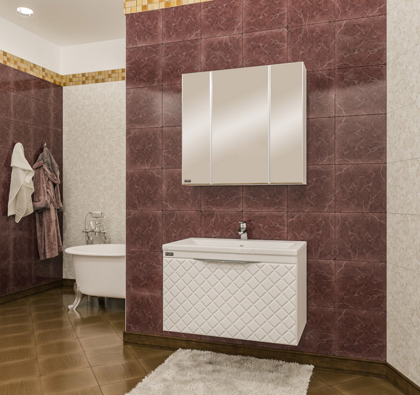 κρεμαστά ντουλάπια στο μπάνιο. Τα πλεονεκτήματα είναι στυλ και ευκολία. Το μειονέκτημα είναι ότι είναι μικρά και απαιτούν αξιόπιστη στερέωση στον τοίχο. Επομένως, η εγκατάστασή τους είναι πιο ενοχλητική.