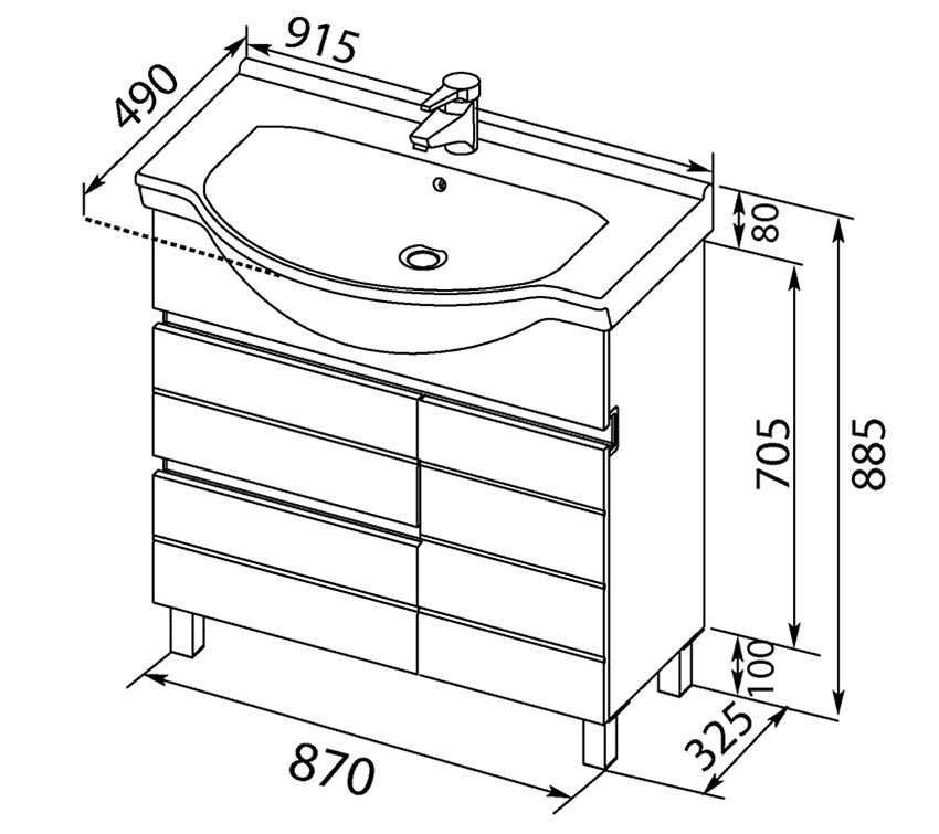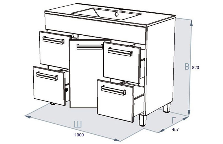Το τυπικό ντουλάπι είναι το πιο βολικό στη χρήση. Το πλάτος εξαρτάται από το μέγεθος του νεροχύτη, το οποίο πρέπει να είναι τουλάχιστον 50 cm. Νιπτήρες μικρότερα μεγέθη εγκαθίστανται, κατ 'εξαίρεση, σε μικρά μπάνια ή τουαλέτες. Οι μεγάλες διαστάσεις, αντίθετα, φαίνονται ανόητες και γελοίες. Το μέγεθος του μπολ αποτελεί βασική οδηγία για την κατασκευή των βάσεων.