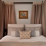 You should be very careful when hanging lamps with fabric shades. Here, harmony with the bedroom textiles is needed. Silk bedspreads, satin cushions, velor curtains will not match the fabric structure of the lampshade.
