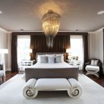 If the bedroom includes a work area, then one chandelier will not be enough to illuminate the entire room.