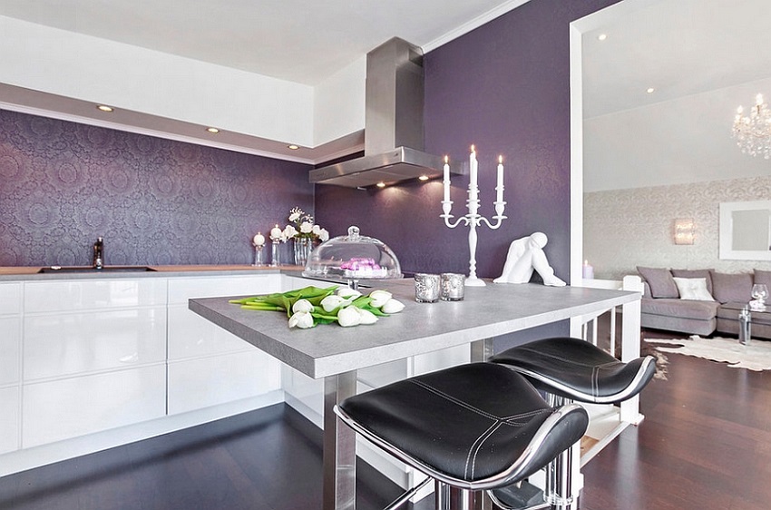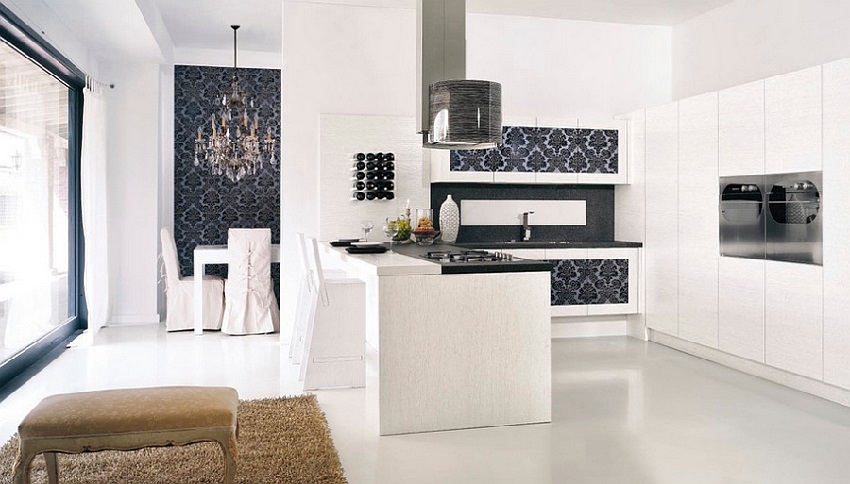 You can also play on contrasts using a monochrome color scheme. Before you start choosing a wallpaper design for a black and white kitchen, you should determine which of the shades will be the main one. The predominance of black color will add mystery and depth to the interior. Using white as the main shade will fill the room with air and light, and visually increase its size.