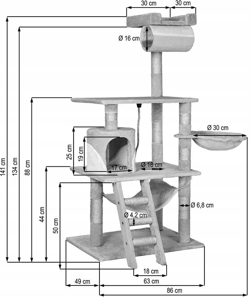 - Playroom. If you equip the structure with a scratching post, ribbons, tunnels or other play accessories, the pet will not lie down, but will strive for constant movement.