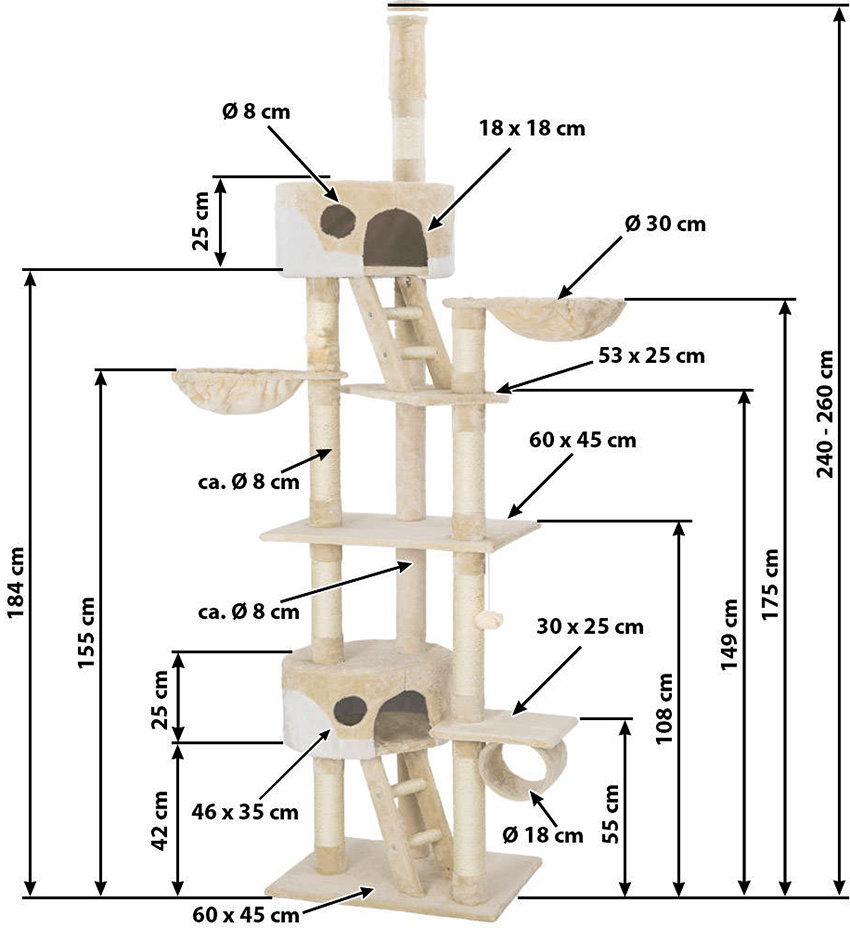 If the animal is elderly or sick, the house should be located at the bottom so that it is convenient for the cat to get inside.