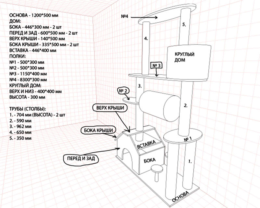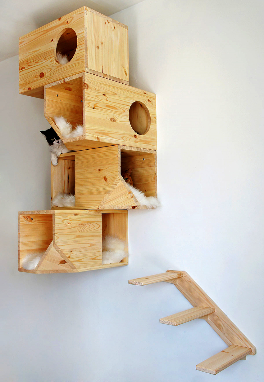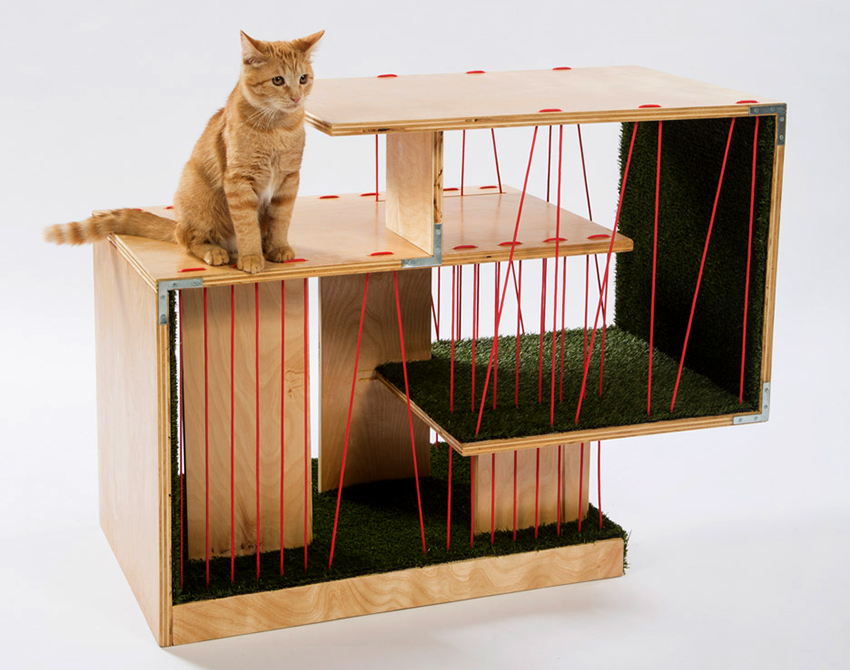 If the size of an apartment or house allows, as well as in the case of the playful nature of the animal and if you wish to create a complex structure on your own, you can think over the manufacture of a whole game complex equipped with shelves, stairs, labyrinths, scratching posts and other accessories interesting for the animal. In such a house, the cat will be able to play even in the absence of the owner, it may stop climbing on the closets and throwing out clothes.