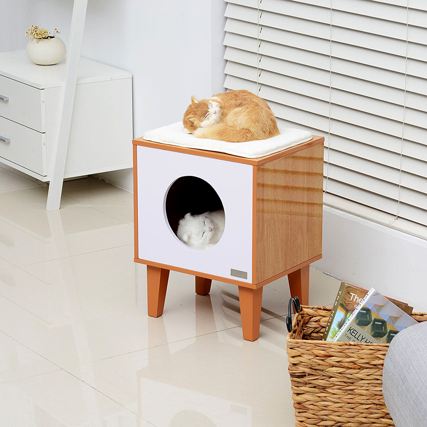 An interesting and convenient option is considered a cat house, suitable for accommodating several animals at the same time. It is appropriate to place such a cat house outdoors or indoors. Depending on the installation site, only the material used should be changed, but the design itself is carried out according to a similar principle. The roof is made flat or with a slight slope. If the house is intended for home use, then plush or other soft fabric is usually fixed on top.