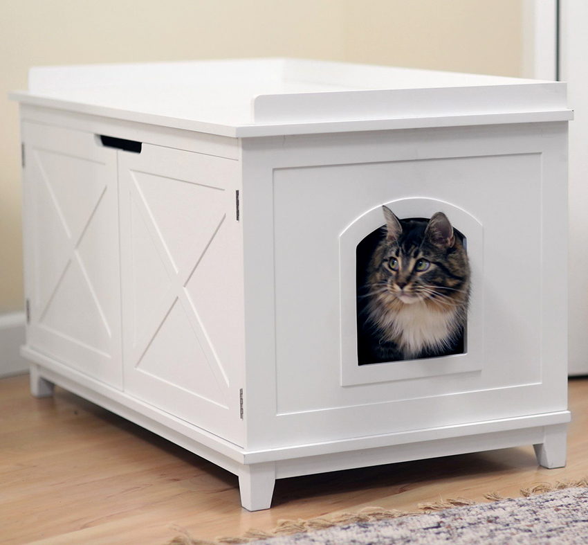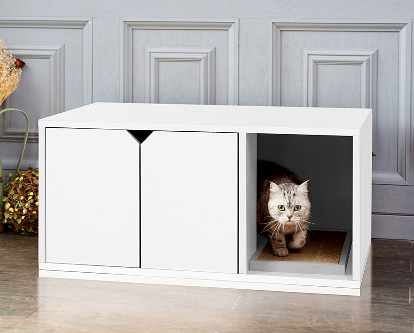 A closed cat litter box is a small structure with a roof. In such a house, the result of the animal's vital activity is hidden from others, and there will be no scattered filler around the toilet. And the pet itself is easier to cope with its needs if it is hidden from prying eyes. Aesthetically, the design looks presentable and can have various shapes and designs, which depends on the mood of the owner.
