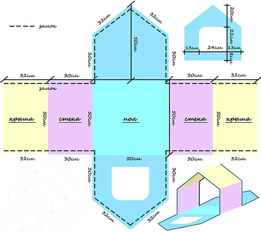 - a sleeping place is recommended to be made in the form of a cube, the edge of which is 40 cm;