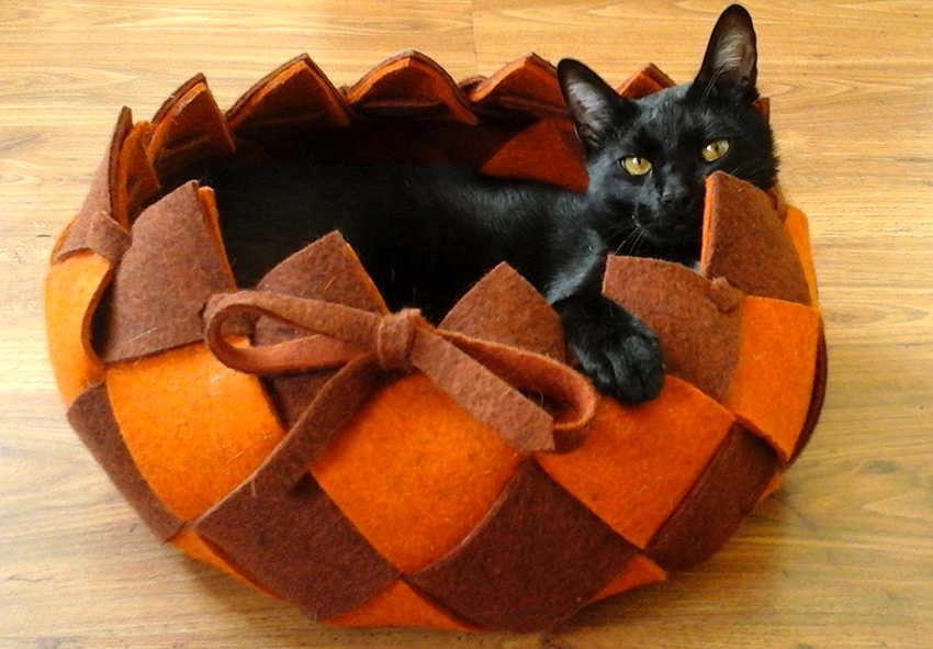 Interesting information! After the cat's house is made, it can be decorated with any elements that are sewn or glued to the side walls.