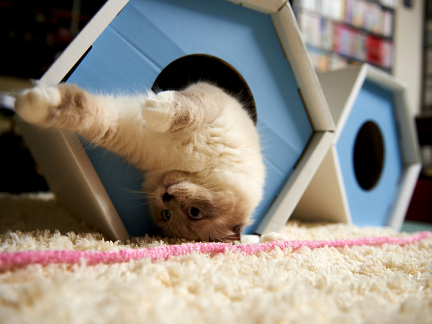The important advantages of cardboard houses for cats are the low cost of construction, high production speed, and the fact that cardboard is a material that retains heat well. A significant disadvantage of the products is a very short service life, and the more active the animal is, the shorter it is.