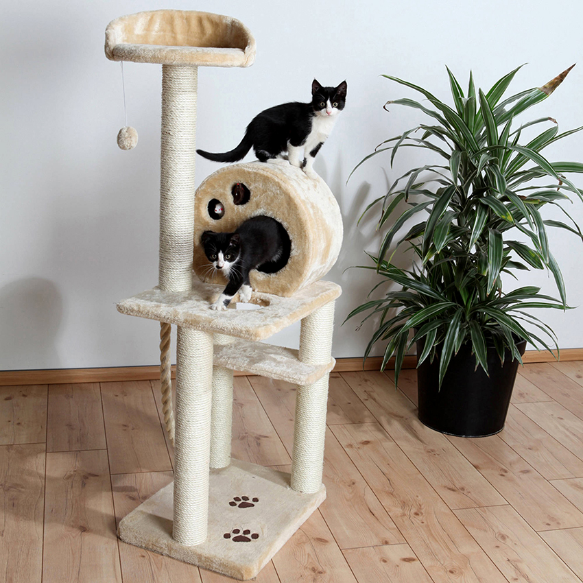 Playful pets need a place where they can throw out their energy, run, tinker and not be punished by their owner. To do this, next to the main covered dwelling, it is advised to fix posts of different heights entwined with twine, the tops of which are decorated with small tabletops for jumping.In this case, you can make play complexes for cats with your own hands or purchase a ready-made design at a pet store. However, it should be borne in mind that the price of complex structures can reach several tens of thousands of rubles.