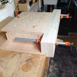 Jotta työ olisi mahdollisimman kätevää, ruuvi ruuvataan työpöydälle.Sitten kiinteään puolikkaaseen kiinnitetään yksinkertainen huonekalumutteri myöhempää ruuvin kiinnittämistä varten. Viimeksi mainittu puolestaan on vastuussa mekanismin liikkuvuudesta. Seuraava vaihe on kiinnittää aluslaatta liikkuvaan leukaan ja kiinnittää jakoavain kahvaan. Itse sienikärjet voidaan valmistaa tavallisesta vanerista.