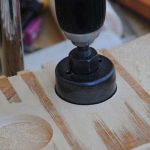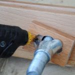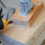- Kiinteässä osassa valmistetut reiät työnnetään muttereihin, jotka on ensin voideltu liimalla molemmin puolin.