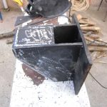 Seuraavassa vaiheessa jauhimella leikataan kaksi kulmaa ja levy.Valmiit kulmat on kiinnitetty kanavaan molemmin puolin ja peitetty metallipalalla. Siten saadaan U-muotoinen rakenne, joka on kanavan käsin tehdyn ruuvin perusta.