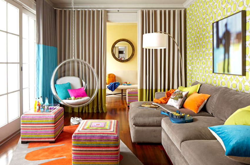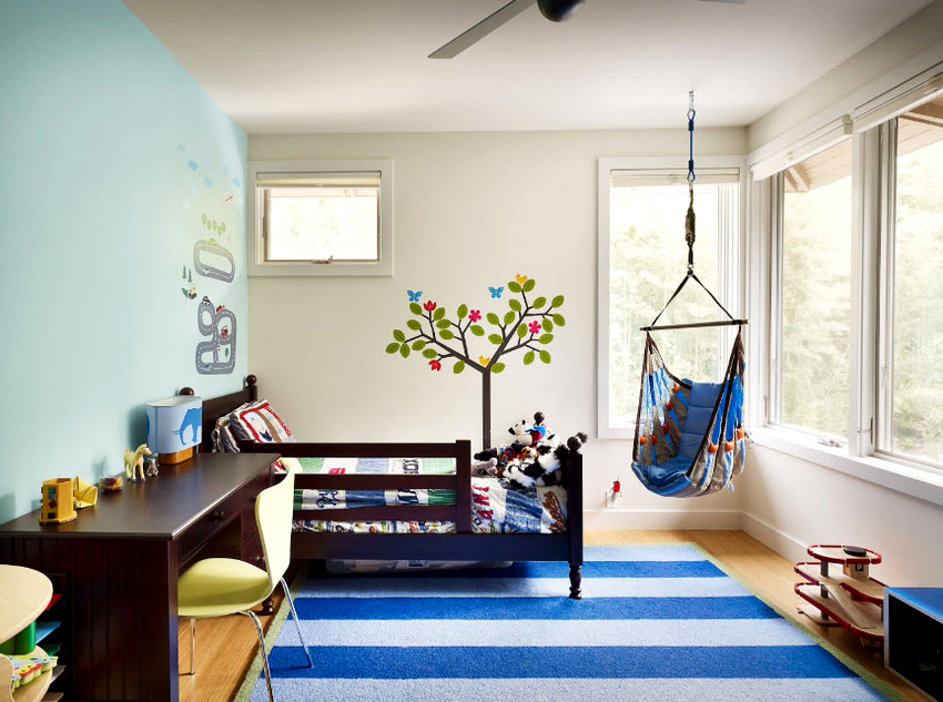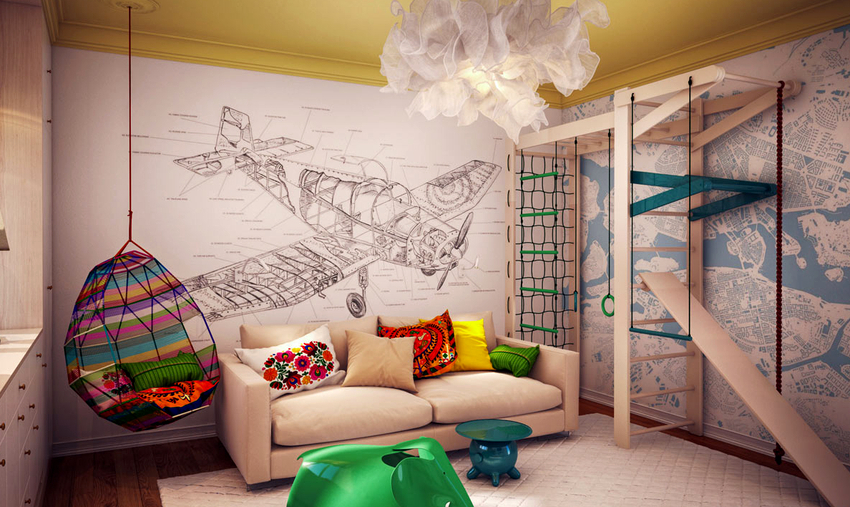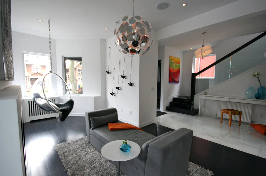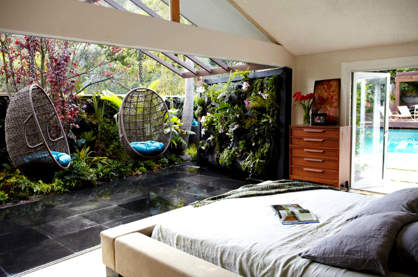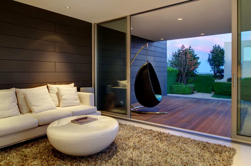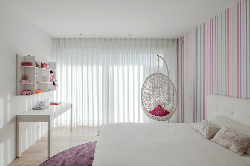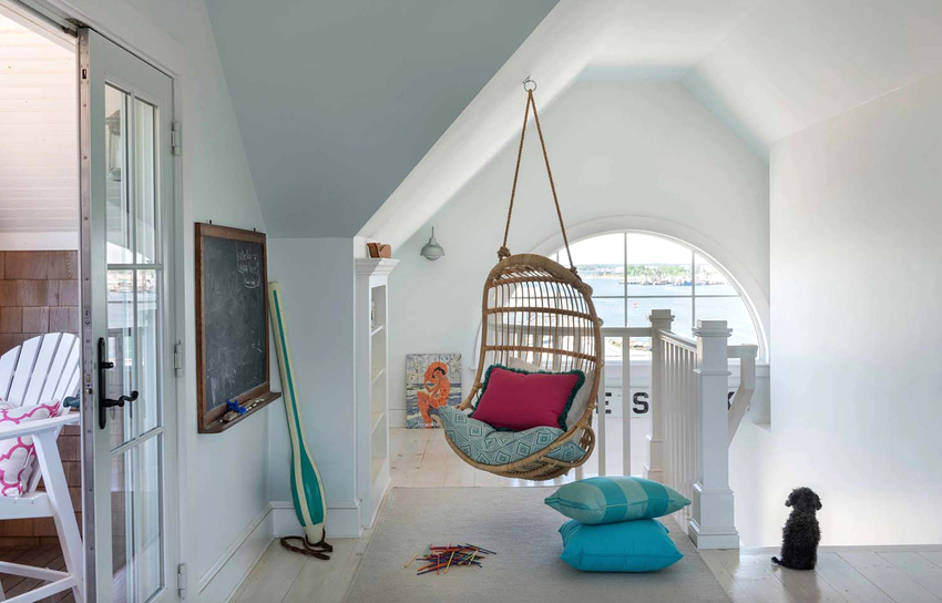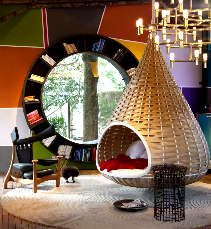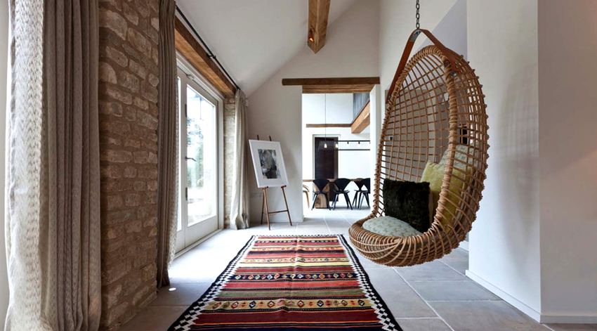 Sisätilojen ripustettavat tuolit näyttävät paljon näyttävämmiltä ja luovat painottomuuden tunteen avaruudessa. Katosta putoava ketju tai pitkä ohut kaapeli, jolla on pätevä lähestymistapa, voidaan tehdä kiinteäksi osaksi huonetta, ja sen päätehtävän lisäksi se on koriste-esine.