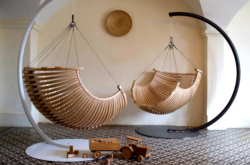 Yleensä mallit muistuttavat keinuja, joten ne näyttävät hyvältä kesämökissä tai lastenhuoneessa, varsinkin jos tuotantoon käytetään luonnonmateriaaleja, kuten viiniköynnöksiä tai rottinkia.