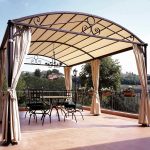 Sisätilan varustamiseksi huvimajalla monet suosivat metallirakenteita. Näkövaloisuudesta huolimatta tällaiset tuotteet ovat erittäin kestäviä, säänkestäviä ja niitä voidaan käyttää vuosikymmenien ajan. Eri maaperän ominaisuudet eivät ole kauheita metallimalleille: ne voidaan rakentaa, vaikka alueen maaperä olisi savea. Ja joidenkin vaihtoehtojen suunnittelu olettaa kokoontaitettavan suunnittelun ja kyvyn siirtää huvimaja uuteen paikkaan.