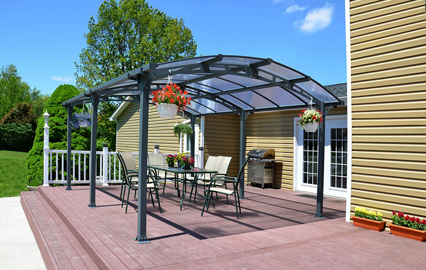 Polykarbonaattikaton läpinäkyvyyden ansiosta voit sijoittaa sen huvimajaan kukkaruukut ja ruukut suosikkikukkasi... He saavat tarpeeksi auringonvaloa kehitystä varten ja samalla heiltä puuttuu ultraviolettisäteilyn haitalliset vaikutukset.