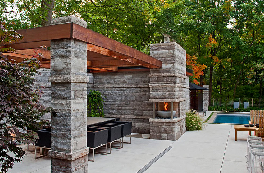 Joissakin malleissa he turvautuvat yhdistämällä tiilet muihin materiaaleihin. Se voi olla metallia, puuta, polykarbonaattia, lasia ja muita rakennusmateriaaleja. Omistajien mieltymyksistä riippuen huvimajat rakennetaan neliönmuotoisiksi, pyöreiksi, kuusikulmaisiksi, kahdeksankulmaisiksi tai niille annetaan monimutkaisemmat muodot. Kiviset huvimajat sopivat täydellisesti esikaupunkialueiden yleiseen tyyliin.