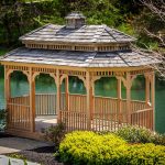 Taotut rakenteet polykarbonaattipinnoitteella ovat ihanteellinen yhdistelmä. Ne voivat olla muodoltaan kuusikulmaisia tai kahdeksankulmaisia, ja niillä on vertaansa vailla oleva juhlallinen ilme. Tällaisia huvimajoja tehdään usein, kun neliömetriä ei tarvitse säästää virkistystä varten.
