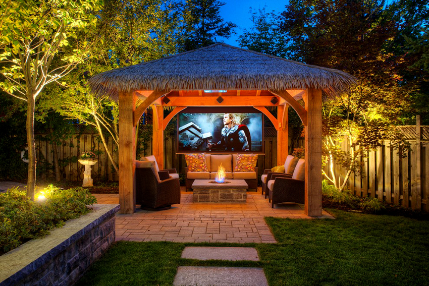 Hyödyllisiä neuvoja! Jos huvimajasi on valmistettu suljetussa versiossa, tavalliset huonelamput soveltuvat valaistukseen. Jos paviljonki on auki, käytä katuvalaistukseen suunniteltuja valaisimia, joilla on tietty suoja.