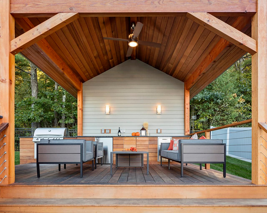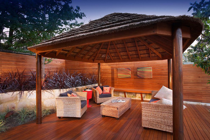 Paviljonkien rakentaminen baarista ei vaadi massiivista perustusta ja vähentää merkittävästi rakennuskustannuksia. Lisäksi suunnittelu voidaan tehdä missä tahansa tyylissä, joka sopii sinulle. On olemassa lukemattomia tapoja tehdä aidat tällaisille huvimajoille.