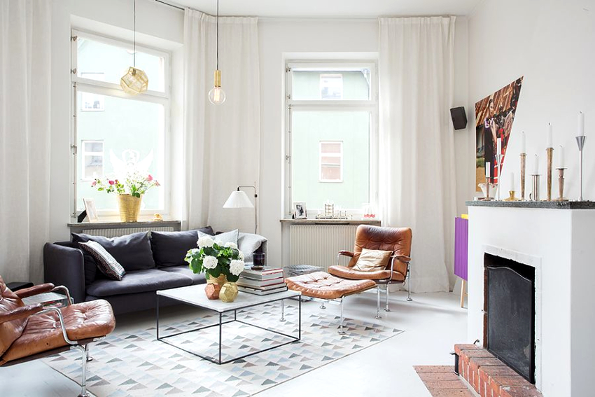 Important! Vous ne devez pas utiliser de velours et de tissus trop brillants dans un intérieur scandinave, qui auront l'air trop pompeux.