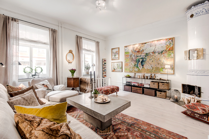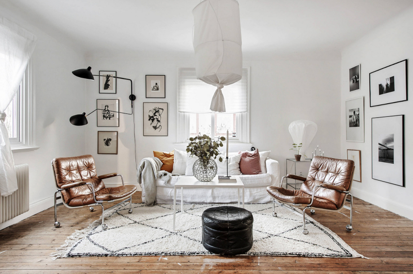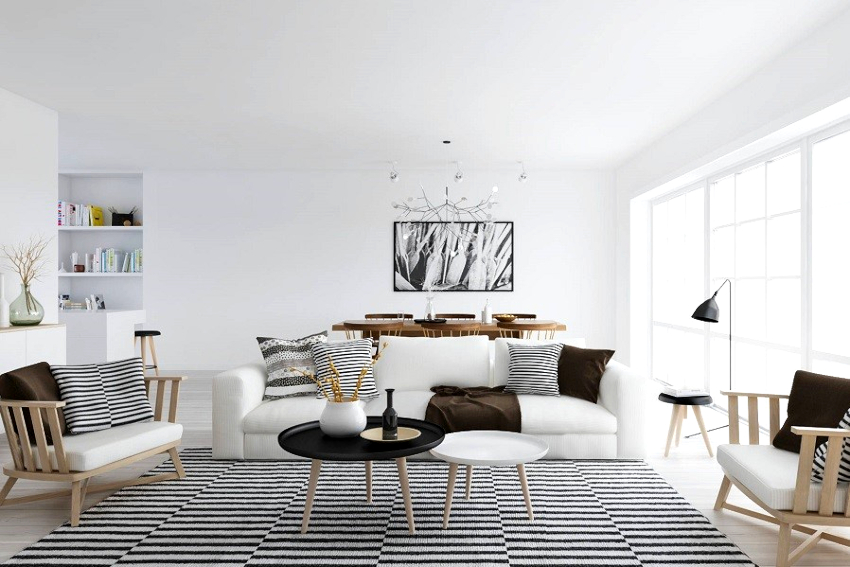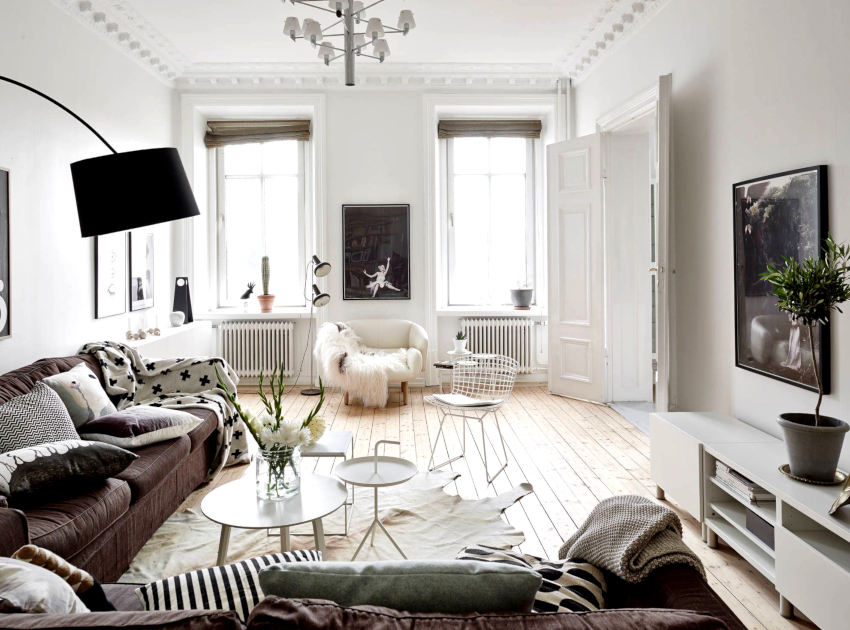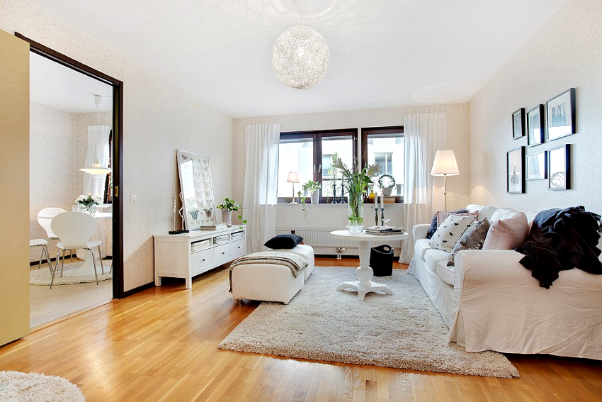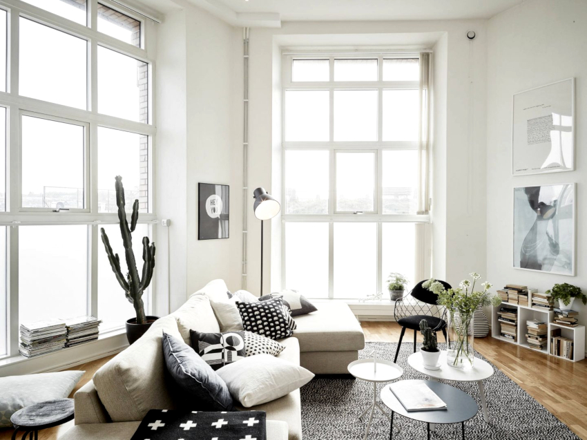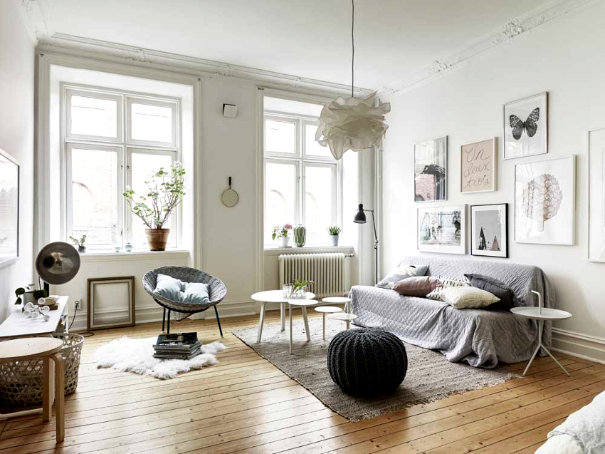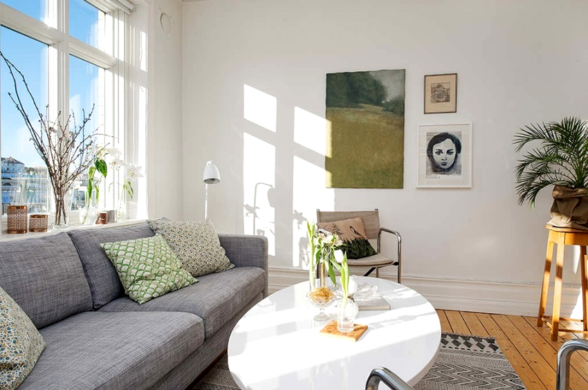 - 6 Textiles et décoration du salon dans un style scandinave: photo des intérieurs de la pièce