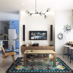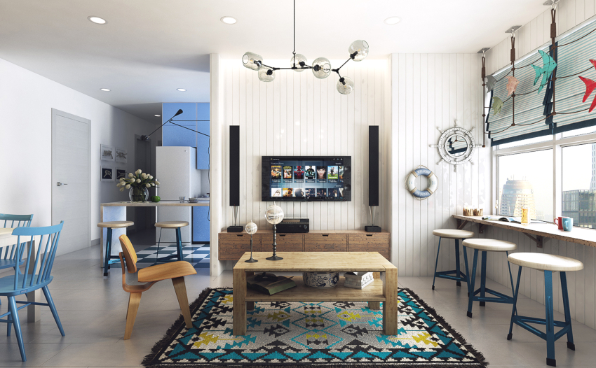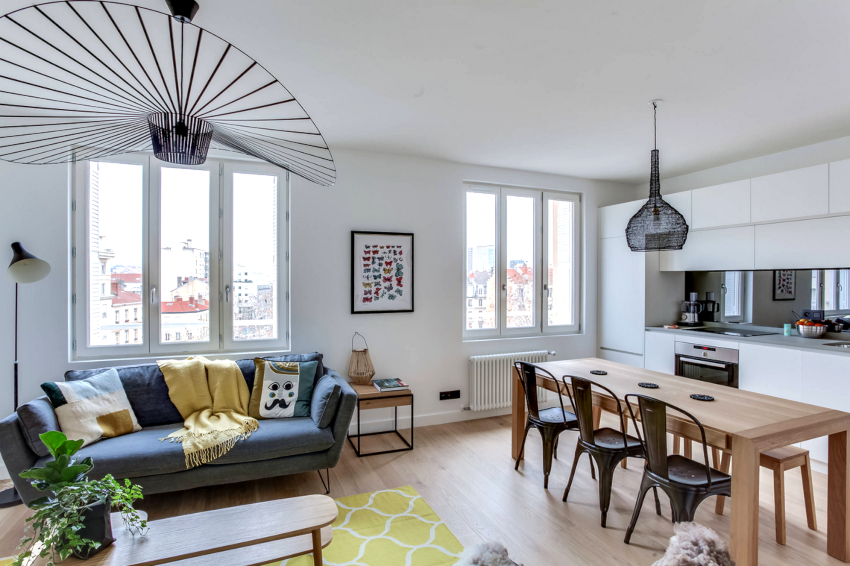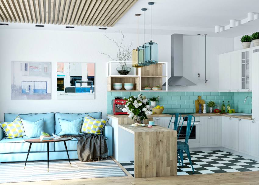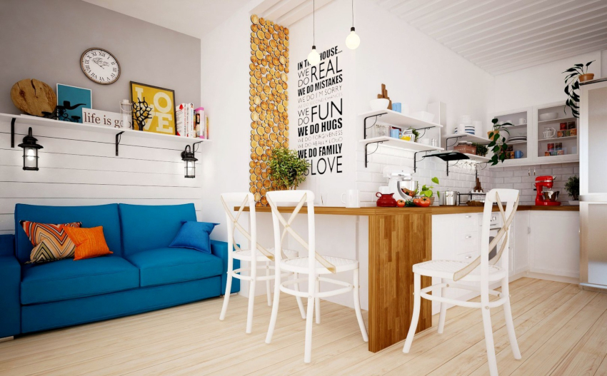 Un comptoir de bar ou une table transformable s'intègrera organiquement dans la cuisine-salon dans le style scandinave
