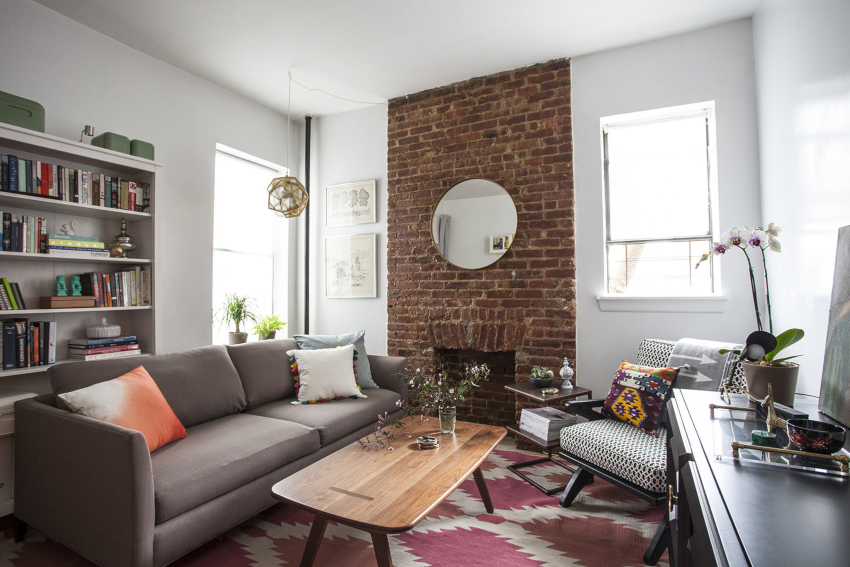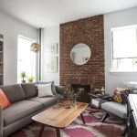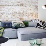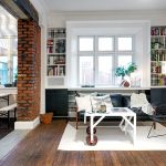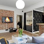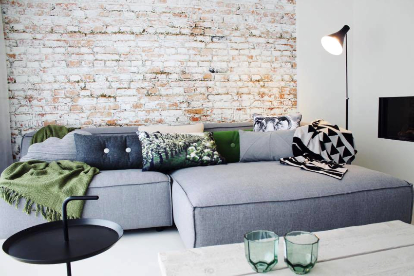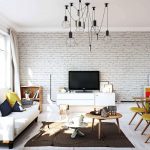 Un mur d'accent garni de briques ou de carreaux ressemblant à des briques a un aspect organique dans un salon scandinave. Il peut rester dans sa couleur rouge naturelle ou virer au blanc pour former une finition brillante ou mate.