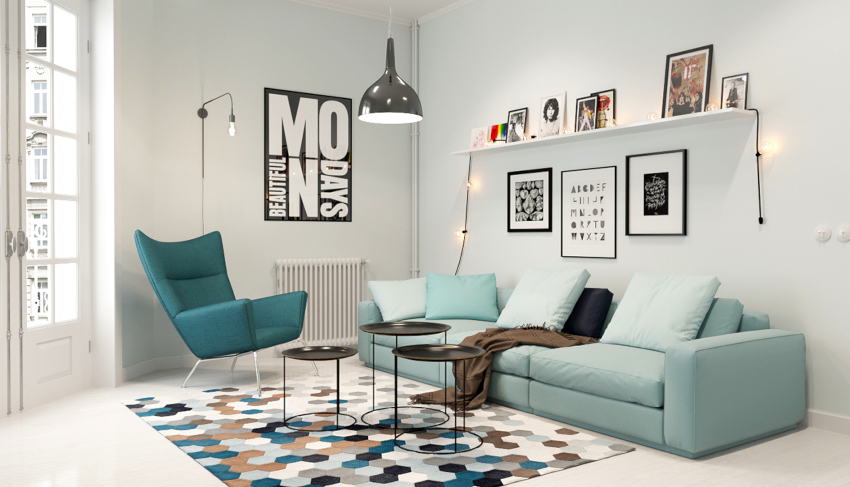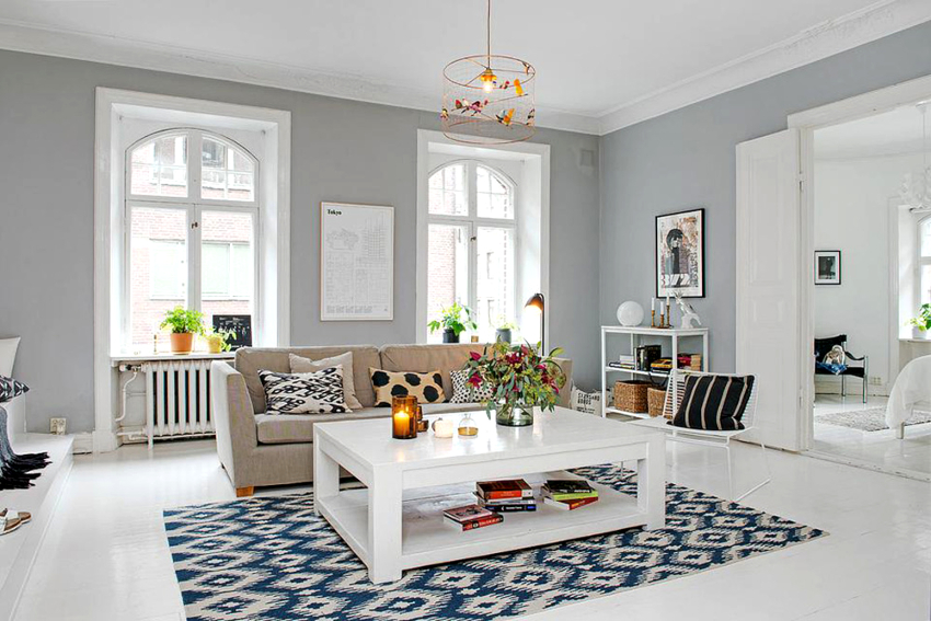 - 2 Salon dans un style scandinave: variations de couleurs actuelles