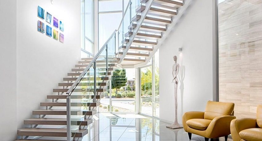 Veliko prednje prebivalište, koje se sastoji od dva nivoa, ima dovoljno prostora, pa je najprikladnije za postavljanje takvih stubišta. Kovanje će u ovom slučaju izgledati impresivno bez prenasićenja interijera. Stubište se može izvesti u obliku slova "T" ili imati strukturu u obliku slova L.