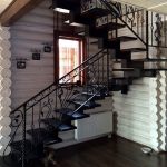 Bilješka! Ograde opremljene elementima za kovanje savršeno se kombiniraju sa spiralnim stubištima ili stubištima s dva leta. Operativni opseg takvih struktura prilično je opsežan, jer se mogu instalirati ne samo u stambenim zgradama, već iu uredskim prostorijama.