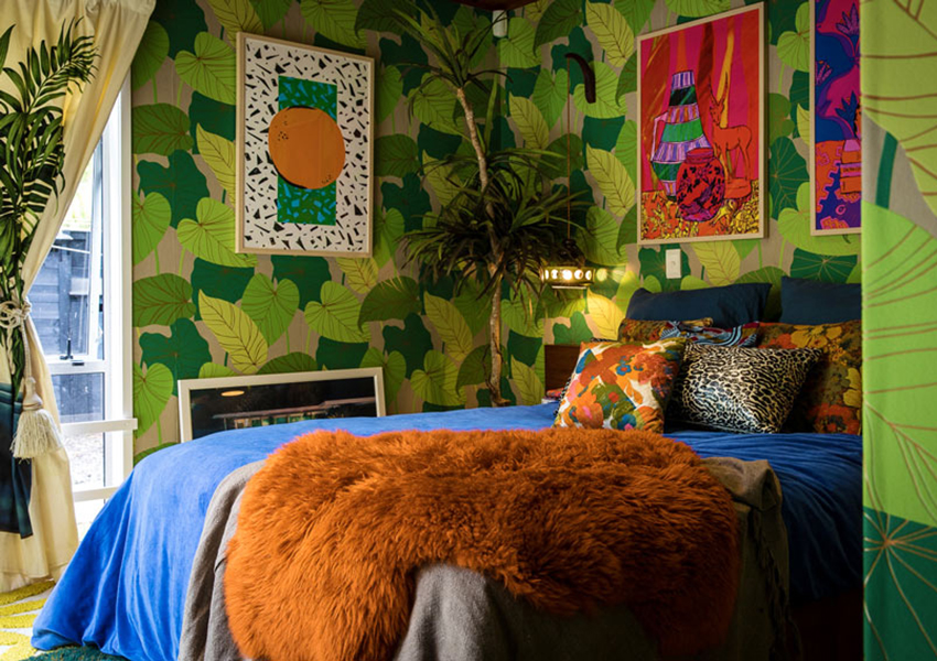 Izvorni i moderni način ukrašavanja zidova u spavaćoj sobi je uokvirenim slikama, gdje su pozadina stare novine ili tapete. Raskošno su ukrašeni zrnima kave, gumbima ili perlicama. Kompozicije izrađene od prirodnih elemenata mogu se lijepiti izravno na zid.