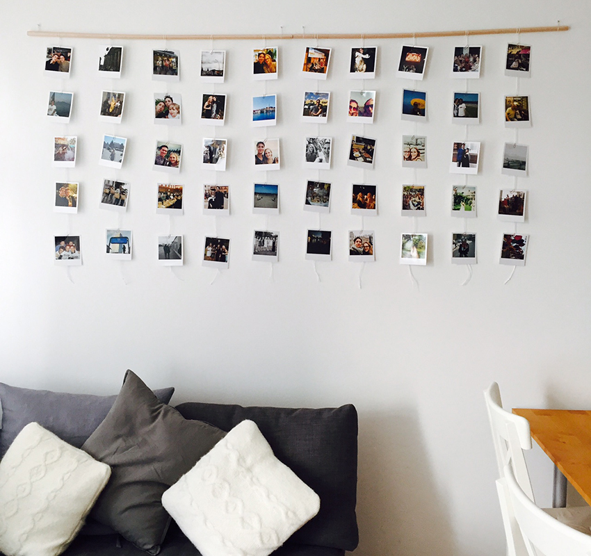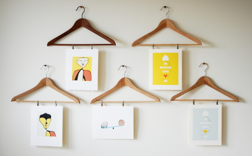 Za ukrašavanje zida fotografijama možete upotrijebiti i posebna nosila koja će kompoziciji dati jednako učinkovit izgled, kao kod uokvirenih fotografija.