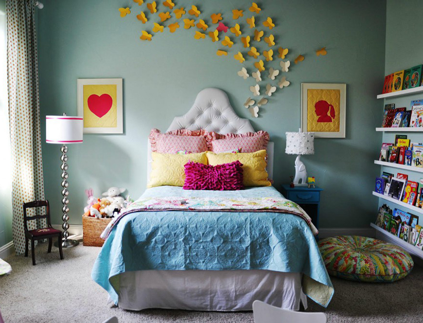 U dječjoj sobi ukras treba kompetentno i skladno kombinirati s planiranjem funkcionalnih područja. Glavna stvar je psihološka udobnost djece. Pozadine sa svijetlim uzorcima nisu poželjne za najmlađe. Izvrsna dekoracija - vinil naljepnice u obliku leptira i cvijeća, koje će stvoriti atmosferu ljeta, radosti i topline.